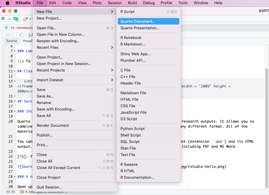 Let’s make a new Quarto document, including some R code and prose.
